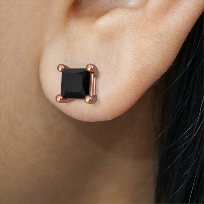 Solitaire stud earrings are contemporary yet fashionable pieces of jewellery. In solitaire stud earrings, the prong setting is open and only 1 stone is set, which helps reflect light on the gemstone from every angle. Because the black diamonds are positioned higher, these contemporary stud earrings become truly eye-catching. We carefully create each detail of these solitaire stud earrings by hand. Our expert goldsmiths set the black diamonds in these rose gold stud earrings with the utmost precision, so light reflects evenly from every angle. The stud earrings are set with 0.48 crt princess black diamonds. The Sam square earrings are made to embellish your ears. Each jewel is lovingly made by hand by our goldsmiths.. Our goldsmiths passionately create your customized stud earrings to your liking with the utmost care. The rose gold set stud earrings, as shown here, can be customized using our online tool. Feel free to ask our jewel designers for assistance if you want changes made which are unavailable in our online tool. We are happy to answer your questions. By using a combination of the latest modern techniques, combined with ancient crafting, we can make all our stud earrings in our own studio. Each jewel is made to order. This is advantageous because we can offer you a price you won't find anywhere else. To make it easier for you, we offer a 30 day return policy. Check our terms and conditions.