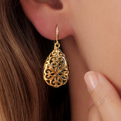How would you describe your style? Are you looking for something slightly different? These fantasy special gold drop earrings are unique and created by our expert goldsmiths. These fantasy drop earrings are set with pink sapphire. Each of the pink sapphire is carefully selected, because we believe your drop earrings should be adorned with nothing but the most exquisite gemstones. Wouldn't you agree? The Idalia 1 earrings are unique pieces of jewellery because they can be customized to your liking.. As soon as you finished designing your fantasy drop earrings with our online tool, our goldsmiths will start their creative process of making your drop earrings. This will be done with passion and care, according ancient crafting. On top of that, our jewels are made of eco-friendly materials. If you want specific changes made to your Idalia 1 drop earrings, that are unavailable in our online tool, please feel free to contact our expert designers.Because we design and deliver our own drop earrings, we can offer you drop earrings at a price you won't find anywhere else. drop earrings are made to order, which helps prevent excess supplies, so we can make you a great price offer. We understand it feels risky, buying your drop earrings online, but we will gladly assist in the designing process, taking your budget into consideration. To make it easier for you, we offer a 30 day return policy. Check our terms and conditions.