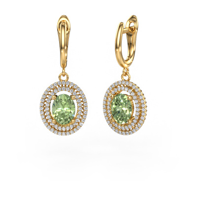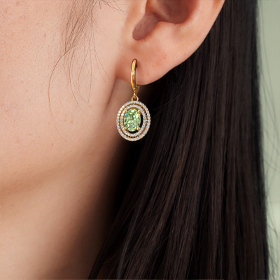 With a pair of exclusive drop earrings, every woman truly stands out. At DiamondsByMe, we create luxury and extraordinary jewellery and we make use of the finest precious metals and gemstones. These exclusive gold drop earrings are a true work of art! Each tiny detail has been made with patience and passion by our expert jeweller. This requires a keen eye and skilful hand in order for the ring to be carefully created to perfection. And this is exactly what our expert jewellers strive for, perfection! The exquisite green lab grown diamonds are set in a way making them seem to shine even brighter. This gives the drop earrings an extra glamorous look. Shown above are our gold Karren drop earrings, set with oval green lab grown diamond. The Karren [extra2_long]. Customized luxury special drop earrings are the perfect gift! New exquisite designs are added daily by our team of passionate goldsmiths. And each design can be customized. Simply customize the precious metals and the colour of gemstones which will be used, for example. This makes your design of the luxury Karren drop earrings truly unique! After receiving your order, our goldsmiths will passionately start the creative process of making your drop earrings in our own studio. Because we don't have a big stockpile, these costs will not be passed on to you. Our pricing is proof of that! We offer top quality jewels at lowest price, guaranteed. To make it easier for you, we offer a 30 day return policy. Check our terms and conditions.
