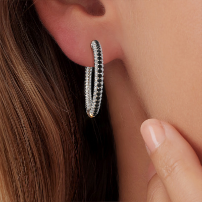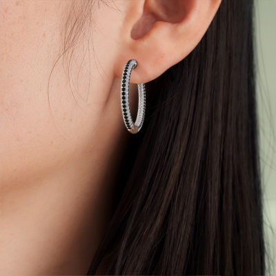 With a pair of exclusive hoop earrings, every woman truly stands out. At DiamondsByMe, we create exclusive and extraordinary jewellery and we make use of the finest precious metals and gemstones. These exclusive white gold hoop earrings are a true work of art! Each tiny detail has been made with patience and passion by our expert jeweller. This requires a keen eye and skilful hand in order for the ring to be carefully created to perfection. And this is exactly what our expert jewellers strive for, perfection! The exquisite black diamonds are set in a way making them seem to shine even brighter. This gives the hoop earrings an extra glamorous look. Shown above are our white gold Hope 20mm hoop earrings, set with round black diamond. The Hope 20mm earrings are passionately made by one of our master goldsmiths.. How do you like these exclusive white gold hoop earrings? Simply customize this Hope 20mm hoop earrings, using our online tool. Subsequently, your personal best prices Hope 20mm hoop earrings will be made by hand by our goldsmiths. Precious metals and gemstones can be customized to your liking. Do you have specific preferences which are unavailable in our online tool? Please feel free to contact us. We will customize your personal exclusive hoop earrings to your liking. Are you on a budget? Please feel free to contact us, so we can go discuss your options. We offer our hoop earrings at guaranteed best price, because we make them to order. You won't find such a price anywhere else! To make it easier for you, we offer a 30 day return policy. Check our terms and conditions.