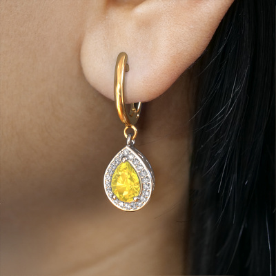 With a pair of exclusive drop earrings, every woman truly stands out. At DiamondsByMe, we create unique and extraordinary jewellery and we make use of the finest precious metals and gemstones. These exclusive white gold drop earrings are a true work of art! Each tiny detail has been made with patience and passion by our expert jeweller. This requires a keen eye and skilful hand in order for the ring to be carefully created to perfection. And this is exactly what our expert jewellers strive for, perfection! The exquisite yellow sapphire are set in a way making them seem to shine even brighter. This gives the drop earrings an extra glamorous look. Shown above are our white gold Ginger 1 drop earrings, set with pear yellow sapphire. The Ginger 1 earrings are made just for you by our master goldsmith in our own artisan studio.. Customized unique graceful drop earrings are the perfect gift! New exquisite designs are added daily by our team of passionate goldsmiths. And each design can be customized. Simply customize the precious metals and the colour of gemstones which will be used, for example. This makes your design of the unique Ginger 1 drop earrings truly unique! After receiving your order, our goldsmiths will passionately start the creative process of making your drop earrings in our own studio. Because we don't have a big stockpile, these costs will not be passed on to you. Our pricing is proof of that! We offer top quality jewels at lowest price, guaranteed. To make it easier for you, we offer a 30 day return policy. Check our terms and conditions.