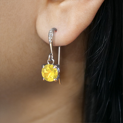 Each modern woman should own her own pair of traditional drop earrings. Buy them from DiamondsByMe. In order to create our exquisite jewels, our expert goldsmiths use the best precious metals and the finest gemstones. Take this traditional white gold yellow sapphire set of Laurie RND 2 drop earrings, for example. Each yellow sapphire is selected with great care, because we believe your drop earrings should only be adorned with the finest yellow sapphire gemstones. Our artisan goldsmiths create your drop earrings in our own crafting studio and they set the yellow sapphire in the drop earrings with the utmost care. Subsequently, they are crafted and polished until it is evident: the perfect drop earrings are done! The Laurie RND 2 earrings are made by a team of passionate goldsmiths and designers. This will make your unique crown jewel eye-catching.. What could possibly be more beautiful than personally designed traditional drop earrings, handmade by yours truly? Please, feel free to customize each model by choosing different precious metals and gemstones. This makes your drop earrings truly unique. These drop earrings can be customized to your liking. It goes without saying that you can also ask us for help. We are more than willing to assist in designing your traditional drop earrings. If you like but still have specific wishes concerning customizing your design, such as adding a gemstone which isn't mentioned in the list, feel free to contact us. We will gladly inform you on different options. After receiving your order, our goldsmiths will start the creative process of making your Laurie RND 2 drop earrings. We don't keep stock. This is advantageous because these costs will not be passed on to you. Therefore, we can offer jewellery at exceptionally low prices. To make it easier for you, we offer a 30 day return policy. Check our terms and conditions.
