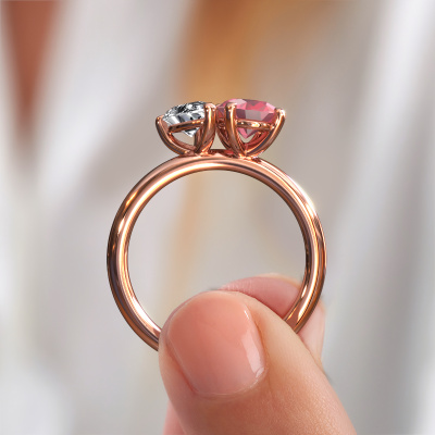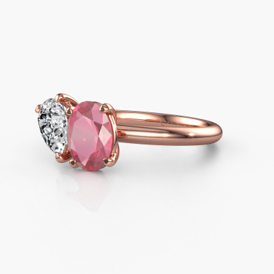 This 14 Carat rose gold ring is called Toi et Moi OVL-PER and is set with tourmaline pink. Do you keep up with the latest fashion trends? Do you want a unique engagement ring that matches your lifestyle? This charming engagement ring is an extraordinary ring which can be custom-made to fit your or her personal style. This fashionable rose gold engagement ring is set with tourmaline pink. Our tourmaline pink are carefully selected for this specific ring in order to create the best effect. Our expert goldsmith will create your ring in our own artisan studio where the tourmaline pink will be set with great care. The ring will then be polished to perfection. Nothing but the best for the love of your life! This jewel is made just for you by our master goldsmiths in our own studio.By using our modern techniques, we can design and customize the finest quality jewels with the utmost care for you. Our engagement rings are always priced 30 percent lower than other jewellers. We make engagement rings to order so we don't have to maintain a large stock. If you have a certain budget, we are more than happy to advice you accordingly.Do you have a specific ring in mind? One you came across somewhere. Please feel free to tell us your wishes and we will turn your design into a unique engagement ring. You can follow the development of your ring design because we use 3D drawings. This gives you a realistic preview of your design. We will gladly send you a non-binding offer, based on a fair price/ quality ratio. It will amaze you.To make it easier for you, we offer a 30 day return policy. Check our terms and conditions.