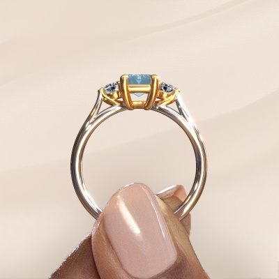 This 14 Carat white gold ring is called Amie EME and is set with 7x5 mm blue lab grown diamond. This exclusive white gold 3-stone engagement ring is a true work of art! The ornaments are crafted with a lot of patience and great passion. In order to create this ring with great precision, this craft requires a keen eye and skilful hand. A challenge which ignites a fire in our expert goldsmith. The exquisite blue lab grown diamonds are set in a special way so they stand out even more. This gives the ring an even more glamorous appearance. The tasteful engagement ring is actually unique on its own because of the gemstones which we carefully select especially for this ring. On top of that you select the precious metals which will be used to create a unique ring for the most extraordinary woman in your life! This jewel is made to shine bright around your finger. Each jewel is hand made with love by our goldsmiths.Are you on a budget? Please feel free to contact us, so we can go discuss your options. We offer our engagement rings at guaranteed best price, because we make them to order. You won't find such a price anywhere else!Our team adds new designs to our online collection daily. Our designers and goldsmiths work together in creating the best design. We strive to offer a diverse collection of jewels. Perhaps you have a specific jewel design in mind. One you came across somewhere. Please contact us for a free consultation. We will make you an offer, based on a fair price/ quality ratio, that will baffle you.To make it easier for you, we offer a 30 day return policy. Check our terms and conditions.