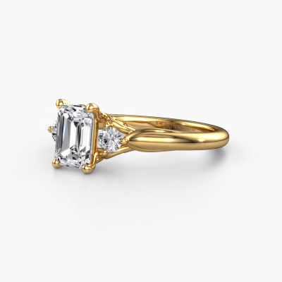 This 14 Carat gold ring is called Laurian EME and is set with 1.69 crt diamond. This exclusive gold 3-stone engagement ring is a true work of art! The ornaments are crafted with a lot of patience and great passion. In order to create this ring with great precision, this craft requires a keen eye and skilful hand. A challenge which ignites a fire in our expert goldsmith. The exquisite diamonds are set in a special way so they stand out even more. This gives the ring an even more glamorous appearance. The special engagement ring is actually unique on its own because of the gemstones which we carefully select especially for this ring. On top of that you select the precious metals which will be used to create a unique ring for the most extraordinary woman in your life! This jewel is unique in every way! Simply customize to your liking,By using a combination of the latest modern techniques, combined with ancient crafting, we can make all our engagement rings in our own studio. Each jewel is made to order. This is advantageous because we can offer you a price you won't find anywhere else.Our team adds new designs to our online collection daily. Our designers and goldsmiths work together in creating the best design. We strive to offer a diverse collection of jewels. Perhaps you have a specific jewel design in mind. One you came across somewhere. Please contact us for a free consultation. We will make you an offer, based on a fair price/ quality ratio, that will baffle you.To make it easier for you, we offer a 30 day return policy. Check our terms and conditions.