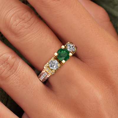 This 14 Carat rose gold ring is called Phileine and is set with 5 mm emerald. This exclusive rose gold 3-stone engagement ring is a true work of art! The ornaments are crafted with a lot of patience and great passion. In order to create this ring with great precision, this craft requires a keen eye and skilful hand. A challenge which ignites a fire in our expert goldsmith. The exquisite emerald are set in a special way so they stand out even more. This gives the ring an even more glamorous appearance. The daring engagement ring is actually unique on its own because of the gemstones which we carefully select especially for this ring. On top of that you select the precious metals which will be used to create a unique ring for the most extraordinary woman in your life! This jewel is made with passion and love by one of our master goldsmiths.After receiving your order, our goldsmiths will passionately start the creative process of making your engagement ring in our own studio. Because we don't have a big stockpile, these costs will not be passed on to you. Our pricing is proof of that! We offer top quality jewels at lowest price, guaranteed.Different styles of new rings are made daily by our team. Perhaps you have found a 3-stone engagement ring somewhere. One you would like to give to your loved one. Please feel free to share your thoughts and design with our jewel designers. We would love to turn your design into a exclusive engagement ring. You can follow the development of your ring design because we use very detailed 3D drawings. On top of that, you can order a dummy of the design. A dummy is a plastic ring, which can be shaped according your ring design. You can try it on and check if the engagement ring is up to standard. We will gladly send you a non-binding offer, based on a fair price/ quality ratio. The offer will baffle you, considering the quality of the ring and gemstones.To make it easier for you, we offer a 30 day return policy. Check our terms and conditions.