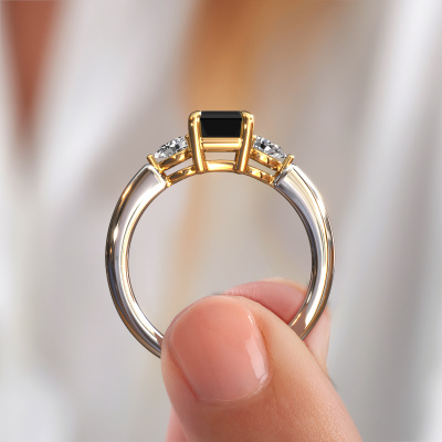 This 14 Carat white gold ring is called Chanou EME and is set with 2.22 crt black diamond. For you, there is only one person in your life who stands out in a crowd. Only one that makes your heart skip a beat. A true gem! She, above all others, deserves a special gift. A unique customized jewel made in her honour. We believe this ring is perfect for your special moment. Each detail of this exclusive white gold 3-stone engagement ring is selected by hand, crafted and polished by our expert goldsmith in our own artisan studio. We strive to achieve the perfect design and composition of the ring, so it enhances the unique features of our black diamonds, and lets them shine even brighter. It takes a lot of precision to make but in the end it pays off because of the sheer beauty of the ring. And that is our main goal. It's what gets us excited. The great thing about our online tool is, that you can design your own jewellery into a unique, personalized piece. This unique tasteful engagement ring is created with the precious metal combination of white gold and gold. But of course you are completely free to select other colours. Each piece of jewellery is made just for you by our master goldsmiths in our own studio.By using a combination of the latest modern techniques, combined with ancient crafting, we can make all our engagement rings in our own studio. Each jewel is made to order. This is advantageous because we can offer you a price you won't find anywhere else.Our designers and goldsmiths work together each day, creating new jewels. Perhaps you have found a nice unique engagement ring somewhere, which can be used to customize your unique ring. Please feel free to contact us. We will make you an offer, based on a fair price/ quality ratio, which will amaze you.To make it easier for you, we offer a 30 day return policy. Check our terms and conditions.