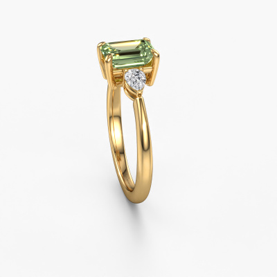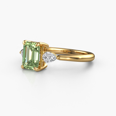 This 14 Carat gold ring is called Chanou EME and is set with 7.5x5.5 mm green lab grown diamond. For you, there is only one person in your life who stands out in a crowd. Only one that makes your heart skip a beat. A true gem! She, above all others, deserves a special gift. A unique customized jewel made in her honour. We believe this ring is perfect for your special moment. Each detail of this exclusive gold 3-stone engagement ring is selected by hand, crafted and polished by our expert goldsmith in our own artisan studio. We strive to achieve the perfect design and composition of the ring, so it enhances the unique features of our green lab grown diamonds, and lets them shine even brighter. It takes a lot of precision to make but in the end it pays off because of the sheer beauty of the ring. And that is our main goal. It's what gets us excited. The great thing about our online tool is, that you can design your own jewellery into a unique, personalized piece. This unique tasteful engagement ring is created with the precious metal combination of gold and gold. But of course you are completely free to select other colours. Each piece of jewellery is made just for you by our master goldsmiths in our own studio.By using a combination of the latest modern techniques, combined with ancient crafting, we can make all our engagement rings in our own studio. Each jewel is made to order. This is advantageous because we can offer you a price you won't find anywhere else.Our designers and goldsmiths work together each day, creating new jewels. Perhaps you have found a nice unique engagement ring somewhere, which can be used to customize your unique ring. Please feel free to contact us. We will make you an offer, based on a fair price/ quality ratio, which will amaze you.To make it easier for you, we offer a 30 day return policy. Check our terms and conditions.
