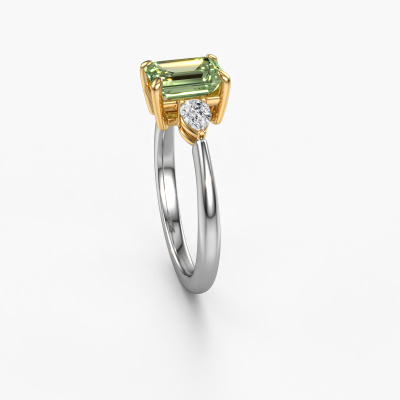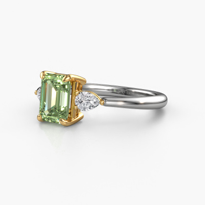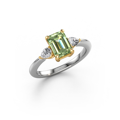 This 14 Carat white gold ring is called Chanou EME and is set with 7.5x5.5 mm green lab grown diamond. For you, there is only one person in your life who stands out in a crowd. Only one that makes your heart skip a beat. A true gem! She, above all others, deserves a special gift. A unique customized jewel made in her honour. We believe this ring is perfect for your special moment. Each detail of this exclusive white gold 3-stone engagement ring is selected by hand, crafted and polished by our expert goldsmith in our own artisan studio. We strive to achieve the perfect design and composition of the ring, so it enhances the unique features of our green lab grown diamonds, and lets them shine even brighter. It takes a lot of precision to make but in the end it pays off because of the sheer beauty of the ring. And that is our main goal. It's what gets us excited. The great thing about our online tool is, that you can design your own jewellery into a unique, personalized piece. This unique tasteful engagement ring is created with the precious metal combination of white gold and gold. But of course you are completely free to select other colours. Each piece of jewellery is made just for you by our master goldsmiths in our own studio.By using a combination of the latest modern techniques, combined with ancient crafting, we can make all our engagement rings in our own studio. Each jewel is made to order. This is advantageous because we can offer you a price you won't find anywhere else.Our designers and goldsmiths work together each day, creating new jewels. Perhaps you have found a nice unique engagement ring somewhere, which can be used to customize your unique ring. Please feel free to contact us. We will make you an offer, based on a fair price/ quality ratio, which will amaze you.To make it easier for you, we offer a 30 day return policy. Check our terms and conditions.