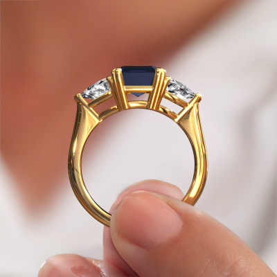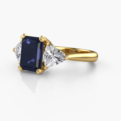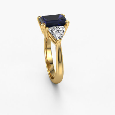 This 14 Carat gold ring is called Paula and is set with 9x7 mm sapphire. For you, there is only one person in your life who stands out in a crowd. Only one that makes your heart skip a beat. A true gem! She, above all others, deserves a special gift. A unique customized jewel made in her honour. We believe this ring is perfect for your special moment. Each detail of this exclusive gold 3-stone engagement ring is selected by hand, crafted and polished by our expert goldsmith in our own artisan studio. We strive to achieve the perfect design and composition of the ring, so it enhances the unique features of our sapphire, and lets them shine even brighter. It takes a lot of precision to make but in the end it pays off because of the sheer beauty of the ring. And that is our main goal. It's what gets us excited. The great thing about our online tool is, that you can design your own jewellery into a unique, personalized piece. This unique special engagement ring is created with the precious metal combination of gold and gold. But of course you are completely free to select other colours. Each piece of jewellery is made just for you by our master goldsmiths in our own studio.By using our modern techniques, we can design and customize the finest quality jewels with the utmost care for you. Our engagement rings are always priced 30 percent lower than other jewellers. We make engagement rings to order so we don't have to maintain a large stock. If you have a certain budget, we are more than happy to advice you accordingly.Our team adds new designs to our online collection daily. Our designers and goldsmiths work together in creating the best design. We strive to offer a diverse collection of jewels. Perhaps you have a specific jewel design in mind. One you came across somewhere. Please contact us for a free consultation. We will make you an offer, based on a fair price/ quality ratio, that will baffle you.To make it easier for you, we offer a 30 day return policy. Check our terms and conditions.