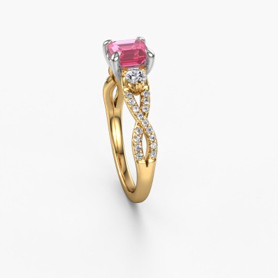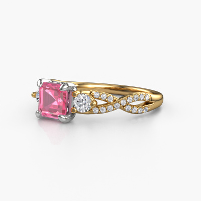 This 14 Carat gold ring is called Marilou ASC and is set with 5.5 mm pink sapphire. Is your girlfriend hooked on vintage? Then this gold twisted engagement ring will surely match her style perfectly. A trendy ring with just a hint of luxury adornment. A truly stunning, romantic design! Especially when you customize your ring to your own liking. This luxury 3-stone engagement ring is set with stunning pink sapphire. As you can see, you are the boss in selecting a gemstone which matches the style of your girlfriend best. Each gemstone is carefully selected by our merchants whom are spread throughout the world. Nothing but the best gems for our expert goldsmith. After all, it is his crowning glory! Each jewel is made just for you by our master goldsmiths in our own studio.By using a combination of the latest modern techniques, combined with ancient crafting, we can make all our engagement rings in our own studio. Each jewel is made to order. This is advantageous because we can offer you a price you won't find anywhere else.Our designers and goldsmiths work together each day, creating new jewels. Perhaps you have found a nice luxury engagement ring somewhere, which can be used to customize your unique ring. Please feel free to contact us. We will make you an offer, based on a fair price/ quality ratio, which will amaze you.To make it easier for you, we offer a 30 day return policy. Check our terms and conditions.