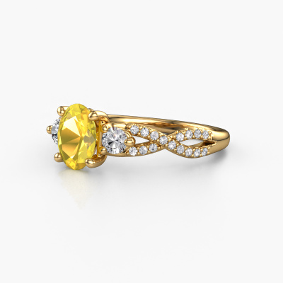 This 14 Carat gold ring is called Marilou OVL and is set with yellow sapphire. Do you keep up with the latest fashion trends? Do you want a unique engagement ring that matches your lifestyle? This tasteful engagement ring is an extraordinary ring which can be custom-made to fit your or her personal style. This contemporary gold engagement ring is set with yellow sapphire. Our yellow sapphire are carefully selected for this specific ring in order to create the best effect. Our expert goldsmith will create your ring in our own artisan studio where the yellow sapphire will be set with great care. The ring will then be polished to perfection. Nothing but the best for the love of your life! This jewel is made just for you by our master goldsmiths in our own studio.By using our modern techniques, we can design and customize the finest quality jewels with the utmost care for you. Our engagement rings are always priced 30 percent lower than other jewellers. We make engagement rings to order so we don't have to maintain a large stock. If you have a certain budget, we are more than happy to advice you accordingly.Do you have a specific ring in mind? One you came across somewhere. Please feel free to tell us your wishes and we will turn your design into a unique engagement ring. You can follow the development of your ring design because we use 3D drawings. This gives you a realistic preview of your design. We will gladly send you a non-binding offer, based on a fair price/ quality ratio. It will amaze you.To make it easier for you, we offer a 30 day return policy. Check our terms and conditions.