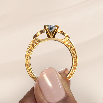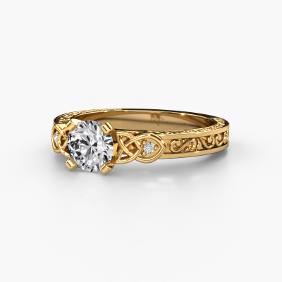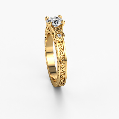 This 14 Carat gold ring is called Gillian and is set with 0.72 crt diamond. Is your girlfriend hooked on vintage? Then this gold ajour engagement ring will surely match her style perfectly. A trendy ring with just a hint of vintage adornment. A truly stunning, romantic design! Especially when you customize your ring to your own liking. This vintage 3-stone engagement ring is set with stunning diamonds. As you can see, you are the boss in selecting a gemstone which matches the style of your girlfriend best. Each gemstone is carefully selected by our merchants whom are spread throughout the world. Nothing but the best gems for our expert goldsmith. After all, it is his crowning glory! Each jewel is made just for you, with attention to detail and design.After receiving your order, our goldsmiths will passionately start the creative process of making your engagement ring in our own studio. Because we don't have a big stockpile, these costs will not be passed on to you. Our pricing is proof of that! We offer top quality jewels at lowest price, guaranteed.Different styles of new rings are made daily by our team. Perhaps you have found a 3-stone engagement ring somewhere. One you would like to give to your loved one. Please feel free to share your thoughts and design with our jewel designers. We would love to turn your design into a vintage engagement ring. You can follow the development of your ring design because we use very detailed 3D drawings. On top of that, you can order a dummy of the design. A dummy is a plastic ring, which can be shaped according your ring design. You can try it on and check if the engagement ring is up to standard. We will gladly send you a non-binding offer, based on a fair price/ quality ratio. The offer will baffle you, considering the quality of the ring and gemstones.To make it easier for you, we offer a 30 day return policy. Check our terms and conditions.