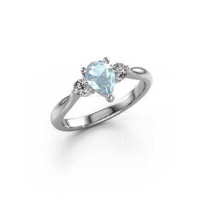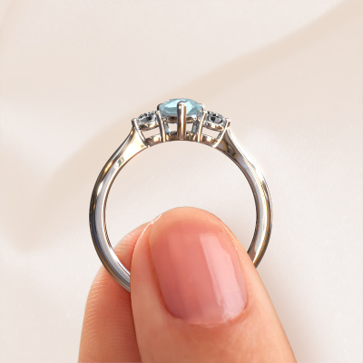 This platinum ring is called Lieselot PER and is set with 7x5 mm aquamarine. For you, there is only one person in your life who stands out in a crowd. Only one that makes your heart skip a beat. A true gem! She, above all others, deserves a special gift. A unique customized jewel made in her honour. We believe this ring is perfect for your special moment. Each detail of this exclusive platinum 3-stone engagement ring is selected by hand, crafted and polished by our expert goldsmith in our own artisan studio. We strive to achieve the perfect design and composition of the ring, so it enhances the unique features of our aquamarine, and lets them shine even brighter. It takes a lot of precision to make but in the end it pays off because of the sheer beauty of the ring. And that is our main goal. It's what gets us excited. The great thing about our online tool is, that you can design your own jewellery into a unique, personalized piece. This unique special engagement ring is created with the precious metal combination of platinum and platinum. But of course you are completely free to select other colours. Each piece of jewellery is made with passion and love by one of our master goldsmiths.Are you on a budget? Please feel free to contact us, so we can go discuss your options. We offer our engagement rings at guaranteed best price, because we make them to order. You won't find such a price anywhere else!Different styles of new rings are made daily by our team. Perhaps you have found a 3-stone engagement ring somewhere. One you would like to give to your loved one. Please feel free to share your thoughts and design with our jewel designers. We would love to turn your design into a fashionable engagement ring. You can follow the development of your ring design because we use very detailed 3D drawings. On top of that, you can order a dummy of the design. A dummy is a plastic ring, which can be shaped according your ring design. You can try it on and check if the engagement ring is up to standard. We will gladly send you a non-binding offer, based on a fair price/ quality ratio. The offer will baffle you, considering the quality of the ring and gemstones.To make it easier for you, we offer a 30 day return policy. Check our terms and conditions.