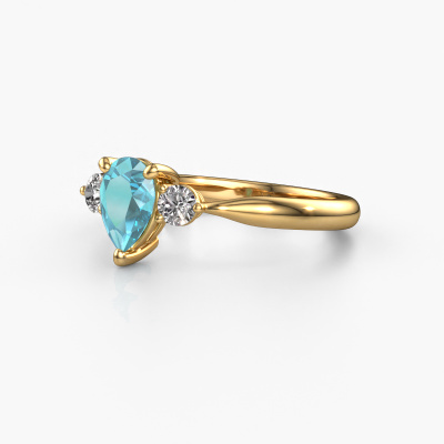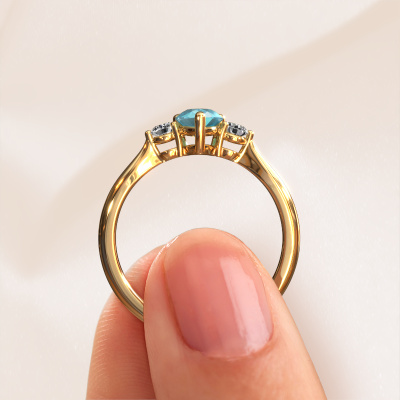 This 14 Carat gold ring is called Lieselot PER and is set with 7x5 mm blue topaz. For you, there is only one person in your life who stands out in a crowd. Only one that makes your heart skip a beat. A true gem! She, above all others, deserves a special gift. A unique customized jewel made in her honour. We believe this ring is perfect for your special moment. Each detail of this exclusive gold 3-stone engagement ring is selected by hand, crafted and polished by our expert goldsmith in our own artisan studio. We strive to achieve the perfect design and composition of the ring, so it enhances the unique features of our blue topaz, and lets them shine even brighter. It takes a lot of precision to make but in the end it pays off because of the sheer beauty of the ring. And that is our main goal. It's what gets us excited. The great thing about our online tool is, that you can design your own jewellery into a unique, personalized piece. This unique special engagement ring is created with the precious metal combination of gold and gold. But of course you are completely free to select other colours. Each piece of jewellery is made with passion and love by one of our master goldsmiths.Are you on a budget? Please feel free to contact us, so we can go discuss your options. We offer our engagement rings at guaranteed best price, because we make them to order. You won't find such a price anywhere else!Different styles of new rings are made daily by our team. Perhaps you have found a 3-stone engagement ring somewhere. One you would like to give to your loved one. Please feel free to share your thoughts and design with our jewel designers. We would love to turn your design into a fashionable engagement ring. You can follow the development of your ring design because we use very detailed 3D drawings. On top of that, you can order a dummy of the design. A dummy is a plastic ring, which can be shaped according your ring design. You can try it on and check if the engagement ring is up to standard. We will gladly send you a non-binding offer, based on a fair price/ quality ratio. The offer will baffle you, considering the quality of the ring and gemstones.To make it easier for you, we offer a 30 day return policy. Check our terms and conditions.