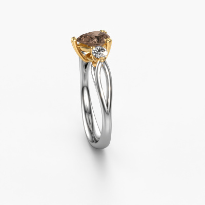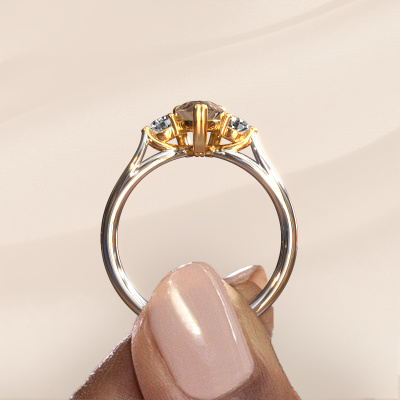 This 14 Carat white gold ring is called Amie per and is set with 0.85 crt brown diamond. For you, there is only one person in your life who stands out in a crowd. Only one that makes your heart skip a beat. A true gem! She, above all others, deserves a special gift. A unique customized jewel made in her honour. We believe this ring is perfect for your special moment. Each detail of this exclusive white gold 3-stone engagement ring is selected by hand, crafted and polished by our expert goldsmith in our own artisan studio. We strive to achieve the perfect design and composition of the ring, so it enhances the unique features of our brown diamonds, and lets them shine even brighter. It takes a lot of precision to make but in the end it pays off because of the sheer beauty of the ring. And that is our main goal. It's what gets us excited. The great thing about our online tool is, that you can design your own jewellery into a unique, personalized piece. This unique special engagement ring is created with the precious metal combination of white gold and gold. But of course you are completely free to select other colours. Each piece of jewellery is made by a team of passionate goldsmiths and jewel designers. This will make your crown jewel truly eye-catching.By using a combination of the latest modern techniques, combined with ancient crafting, we can make all our engagement rings in our own studio. Each jewel is made to order. This is advantageous because we can offer you a price you won't find anywhere else.Do you have a specific ring in mind? One you came across somewhere. Please feel free to tell us your wishes and we will turn your design into a unique engagement ring. You can follow the development of your ring design because we use 3D drawings. This gives you a realistic preview of your design. We will gladly send you a non-binding offer, based on a fair price/ quality ratio. It will amaze you.To make it easier for you, we offer a 30 day return policy. Check our terms and conditions.