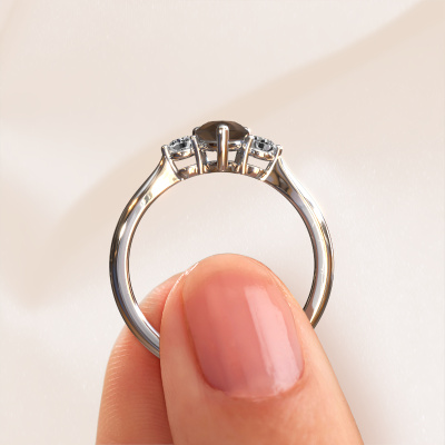 This platinum ring is called Lieselot PER and is set with 7x5 mm smokey quartz. For you, there is only one person in your life who stands out in a crowd. Only one that makes your heart skip a beat. A true gem! She, above all others, deserves a special gift. A unique customized jewel made in her honour. We believe this ring is perfect for your special moment. Each detail of this exclusive platinum 3-stone engagement ring is selected by hand, crafted and polished by our expert goldsmith in our own artisan studio. We strive to achieve the perfect design and composition of the ring, so it enhances the unique features of our smokey quartz, and lets them shine even brighter. It takes a lot of precision to make but in the end it pays off because of the sheer beauty of the ring. And that is our main goal. It's what gets us excited. The great thing about our online tool is, that you can design your own jewellery into a unique, personalized piece. This unique special engagement ring is created with the precious metal combination of platinum and platinum. But of course you are completely free to select other colours. Each piece of jewellery is made with passion and love by one of our master goldsmiths.Are you on a budget? Please feel free to contact us, so we can go discuss your options. We offer our engagement rings at guaranteed best price, because we make them to order. You won't find such a price anywhere else!Different styles of new rings are made daily by our team. Perhaps you have found a 3-stone engagement ring somewhere. One you would like to give to your loved one. Please feel free to share your thoughts and design with our jewel designers. We would love to turn your design into a fashionable engagement ring. You can follow the development of your ring design because we use very detailed 3D drawings. On top of that, you can order a dummy of the design. A dummy is a plastic ring, which can be shaped according your ring design. You can try it on and check if the engagement ring is up to standard. We will gladly send you a non-binding offer, based on a fair price/ quality ratio. The offer will baffle you, considering the quality of the ring and gemstones.To make it easier for you, we offer a 30 day return policy. Check our terms and conditions.