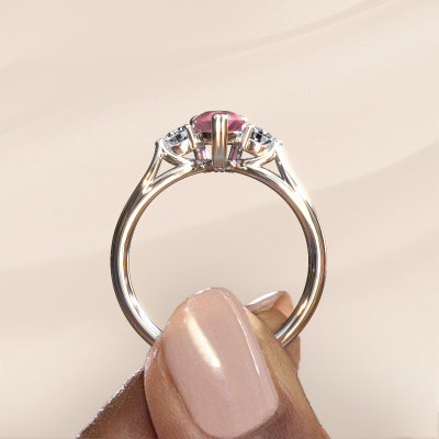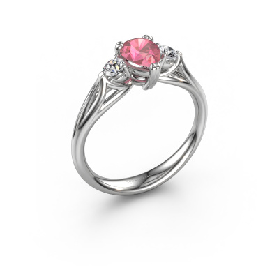 This platinum ring is called Amie per and is set with 7x5 mm tourmaline pink. For you, there is only one person in your life who stands out in a crowd. Only one that makes your heart skip a beat. A true gem! She, above all others, deserves a special gift. A unique customized jewel made in her honour. We believe this ring is perfect for your special moment. Each detail of this exclusive platinum 3-stone engagement ring is selected by hand, crafted and polished by our expert goldsmith in our own artisan studio. We strive to achieve the perfect design and composition of the ring, so it enhances the unique features of our tourmaline pink, and lets them shine even brighter. It takes a lot of precision to make but in the end it pays off because of the sheer beauty of the ring. And that is our main goal. It's what gets us excited. The great thing about our online tool is, that you can design your own jewellery into a unique, personalized piece. This unique special engagement ring is created with the precious metal combination of platinum and platinum. But of course you are completely free to select other colours. Each piece of jewellery is made by a team of passionate goldsmiths and jewel designers. This will make your crown jewel truly eye-catching.By using a combination of the latest modern techniques, combined with ancient crafting, we can make all our engagement rings in our own studio. Each jewel is made to order. This is advantageous because we can offer you a price you won't find anywhere else.Do you have a specific ring in mind? One you came across somewhere. Please feel free to tell us your wishes and we will turn your design into a unique engagement ring. You can follow the development of your ring design because we use 3D drawings. This gives you a realistic preview of your design. We will gladly send you a non-binding offer, based on a fair price/ quality ratio. It will amaze you.To make it easier for you, we offer a 30 day return policy. Check our terms and conditions.