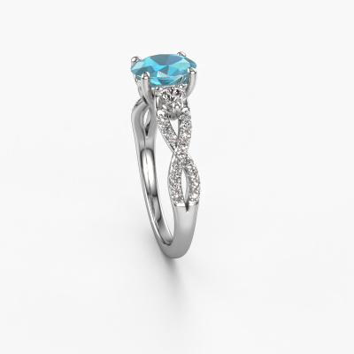 This platinum ring is called Marilou OVL and is set with blue topaz. Do you keep up with the latest fashion trends? Do you want a unique engagement ring that matches your lifestyle? This tasteful engagement ring is an extraordinary ring which can be custom-made to fit your or her personal style. This contemporary platinum engagement ring is set with blue topaz. Our blue topaz are carefully selected for this specific ring in order to create the best effect. Our expert goldsmith will create your ring in our own artisan studio where the blue topaz will be set with great care. The ring will then be polished to perfection. Nothing but the best for the love of your life! This jewel is made just for you by our master goldsmiths in our own studio.By using our modern techniques, we can design and customize the finest quality jewels with the utmost care for you. Our engagement rings are always priced 30 percent lower than other jewellers. We make engagement rings to order so we don't have to maintain a large stock. If you have a certain budget, we are more than happy to advice you accordingly.Do you have a specific ring in mind? One you came across somewhere. Please feel free to tell us your wishes and we will turn your design into a unique engagement ring. You can follow the development of your ring design because we use 3D drawings. This gives you a realistic preview of your design. We will gladly send you a non-binding offer, based on a fair price/ quality ratio. It will amaze you.To make it easier for you, we offer a 30 day return policy. Check our terms and conditions.
