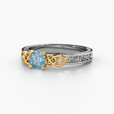 This 14 Carat white gold ring is called Gillian and is set with 5 mm blue lab grown diamond. Is your girlfriend hooked on vintage? Then this white gold ajour engagement ring will surely match her style perfectly. A trendy ring with just a hint of vintage adornment. A truly stunning, romantic design! Especially when you customize your ring to your own liking. This vintage 3-stone engagement ring is set with stunning blue lab grown diamonds. As you can see, you are the boss in selecting a gemstone which matches the style of your girlfriend best. Each gemstone is carefully selected by our merchants whom are spread throughout the world. Nothing but the best gems for our expert goldsmith. After all, it is his crowning glory! Each jewel is made just for you, with attention to detail and design.After receiving your order, our goldsmiths will passionately start the creative process of making your engagement ring in our own studio. Because we don't have a big stockpile, these costs will not be passed on to you. Our pricing is proof of that! We offer top quality jewels at lowest price, guaranteed.Different styles of new rings are made daily by our team. Perhaps you have found a 3-stone engagement ring somewhere. One you would like to give to your loved one. Please feel free to share your thoughts and design with our jewel designers. We would love to turn your design into a vintage engagement ring. You can follow the development of your ring design because we use very detailed 3D drawings. On top of that, you can order a dummy of the design. A dummy is a plastic ring, which can be shaped according your ring design. You can try it on and check if the engagement ring is up to standard. We will gladly send you a non-binding offer, based on a fair price/ quality ratio. The offer will baffle you, considering the quality of the ring and gemstones.To make it easier for you, we offer a 30 day return policy. Check our terms and conditions.