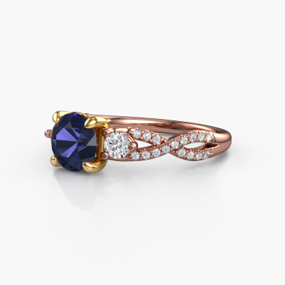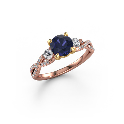 This 14 Carat rose gold ring is called Marilou RND and is set with 6.5 mm sapphire. This exclusive rose gold 3-stone engagement ring is a true work of art! The ornaments are crafted with a lot of patience and great passion. In order to create this ring with great precision, this craft requires a keen eye and skilful hand. A challenge which ignites a fire in our expert goldsmith. The exquisite sapphire are set in a special way so they stand out even more. This gives the ring an even more glamorous appearance. The split band engagement ring is actually unique on its own because of the gemstones which we carefully select especially for this ring. On top of that you select the precious metals which will be used to create a unique ring for the most extraordinary woman in your life! This jewel is made just for you, with attention to detail and design.Are you on a budget? Please feel free to contact us, so we can go discuss your options. We offer our engagement rings at guaranteed best price, because we make them to order. You won't find such a price anywhere else!Have you found a specific engagement ring somewhere which you would like to give to your loved one? Please feel free to express your wishes to our jewel designers because we would be honoured to turn your design into a fantasy engagement ring. You can follow the development of your ring design because we use 3D drawings. This gives you a realistic preview of how your design will look. You can also preorder a dummy. A dummy is a plastic ring, which can be shaped according your ring design. You can try it on and check if its width and size are suitable for you. We will gladly send you a non-binding offer, based on a fair price/ quality ratio. It will amaze you, considering the quality of the ring and gemstones.To make it easier for you, we offer a 30 day return policy. Check our terms and conditions.