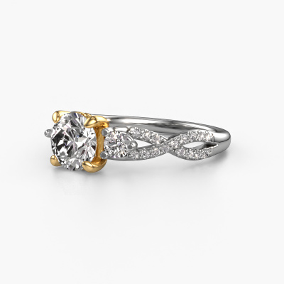 This 14 Carat white gold ring is called Marilou RND and is set with 6.5 mm zirconia. This exclusive white gold 3-stone engagement ring is a true work of art! The ornaments are crafted with a lot of patience and great passion. In order to create this ring with great precision, this craft requires a keen eye and skilful hand. A challenge which ignites a fire in our expert goldsmith. The exquisite cz-stones are set in a special way so they stand out even more. This gives the ring an even more glamorous appearance. The split band engagement ring is actually unique on its own because of the gemstones which we carefully select especially for this ring. On top of that you select the precious metals which will be used to create a unique ring for the most extraordinary woman in your life! This jewel is made just for you, with attention to detail and design.Are you on a budget? Please feel free to contact us, so we can go discuss your options. We offer our engagement rings at guaranteed best price, because we make them to order. You won't find such a price anywhere else!Have you found a specific engagement ring somewhere which you would like to give to your loved one? Please feel free to express your wishes to our jewel designers because we would be honoured to turn your design into a fantasy engagement ring. You can follow the development of your ring design because we use 3D drawings. This gives you a realistic preview of how your design will look. You can also preorder a dummy. A dummy is a plastic ring, which can be shaped according your ring design. You can try it on and check if its width and size are suitable for you. We will gladly send you a non-binding offer, based on a fair price/ quality ratio. It will amaze you, considering the quality of the ring and gemstones.To make it easier for you, we offer a 30 day return policy. Check our terms and conditions.