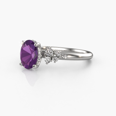This 14 Carat white gold ring is called Emma OVL and is set with amethyst. How would you describe the style of the love of your life? Does she have a unique sense of style? This stunning sublime white gold engagement ring can be custom-made to your own or her liking. Our amethysten gemstones have been carefully selected because we believe your fantasy engagement ring must be adorned with nothing but the most beautiful gemstone. Don't you agree? This jewel is made by a team of passionate goldsmiths and jewel designers. This will make your crown jewel truly eye-catching.By using a combination of the latest modern techniques, combined with ancient crafting, we can make all our engagement rings in our own studio. Each jewel is made to order. This is advantageous because we can offer you a price you won't find anywhere else.Different styles of new rings are made daily by our team. Perhaps you have found a pavé solitaire engagement ring somewhere. One you would like to give to your loved one. Please feel free to share your thoughts and design with our jewel designers. We would love to turn your design into a fantasy engagement ring. You can follow the development of your ring design because we use very detailed 3D drawings. On top of that, you can order a dummy of the design. A dummy is a plastic ring, which can be shaped according your ring design. You can try it on and check if the engagement ring is up to standard. We will gladly send you a non-binding offer, based on a fair price/ quality ratio. The offer will baffle you, considering the quality of the ring and gemstones.To make it easier for you, we offer a 30 day return policy. Check our terms and conditions.