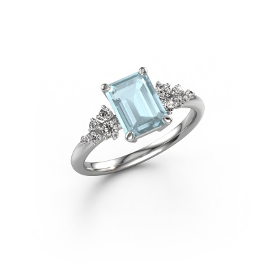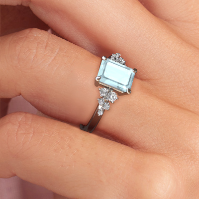 This platinum ring is called Royce EME and is set with 8x6 mm aquamarine. What is it that makes your relationship unique? What is it about her that makes you want to bend down on one knee? The unique bond between the two of you is emphasized by an