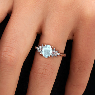 This 14 Carat rose gold ring is called Fiona OVL and is set with aquamarine. How would you describe the style of the love of your life? Does she have a unique sense of style? This stunning beautiful rose gold engagement ring can be custom-made to your own or her liking. Our aquamarine gemstones have been carefully selected because we believe your unique engagement ring must be adorned with nothing but the most beautiful gemstone. Don't you agree? This jewel is made just for you, with attention to detail and design.By using a combination of the latest modern techniques, combined with ancient crafting, we can make all our engagement rings in our own studio. Each jewel is made to order. This is advantageous because we can offer you a price you won't find anywhere else.Our designers and goldsmiths work together each day, creating new jewels. Perhaps you have found a nice unique engagement ring somewhere, which can be used to customize your unique ring. Please feel free to contact us. We will make you an offer, based on a fair price/ quality ratio, which will amaze you.To make it easier for you, we offer a 30 day return policy. Check our terms and conditions.