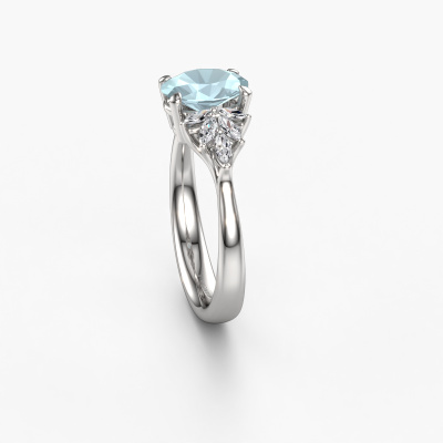 This 14 Carat white gold ring is called Fiona OVL and is set with aquamarine. How would you describe the style of the love of your life? Does she have a unique sense of style? This stunning beautiful white gold engagement ring can be custom-made to your own or her liking. Our aquamarine gemstones have been carefully selected because we believe your unique engagement ring must be adorned with nothing but the most beautiful gemstone. Don't you agree? This jewel is made just for you, with attention to detail and design.By using a combination of the latest modern techniques, combined with ancient crafting, we can make all our engagement rings in our own studio. Each jewel is made to order. This is advantageous because we can offer you a price you won't find anywhere else.Our designers and goldsmiths work together each day, creating new jewels. Perhaps you have found a nice unique engagement ring somewhere, which can be used to customize your unique ring. Please feel free to contact us. We will make you an offer, based on a fair price/ quality ratio, which will amaze you.To make it easier for you, we offer a 30 day return policy. Check our terms and conditions.