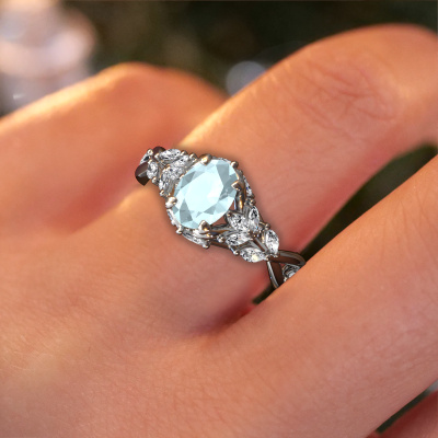 This 14 Carat white gold ring is called Samantha OVL and is set with 7,5x5,5 mm aquamarine. What is it that makes your relationship unique? What is it about her that makes you want to bend down on one knee? The unique bond between the two of you is emphasized by an equally unique ring. A one of a kind special pavé solitaire engagement ring made especially for her. That is why this unique ring fits her like a glove. Each specific detail of this special white gold aquamarine set engagement ring is hand-picked, crafted and polished by our expert goldsmith. The result is an exquisite ring, unique and perfectly crafted to perfection. That is what our expert Goldsmiths strive for. This jewel is made just for you by our master goldsmiths in our own studio.After receiving your order, our goldsmiths will passionately start the creative process of making your engagement ring in our own studio. Because we don't have a big stockpile, these costs will not be passed on to you. Our pricing is proof of that! We offer top quality jewels at lowest price, guaranteed.Our team adds new designs to our online collection daily. Our designers and goldsmiths work together in creating the best design. We strive to offer a diverse collection of jewels. Perhaps you have a specific jewel design in mind. One you came across somewhere. Please contact us for a free consultation. We will make you an offer, based on a fair price/ quality ratio, that will baffle you.To make it easier for you, we offer a 30 day return policy. Check our terms and conditions.