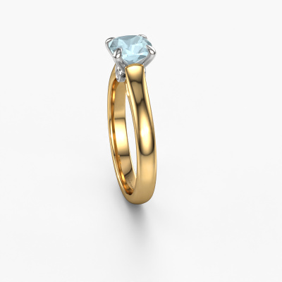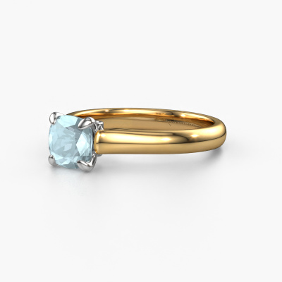 The ring shown above is called the Valorie cus 1, we call this a solitaire ring because it contains a single gemstone. The engagement ring is made in 14 Carat gold and has a cushion aquamarine of 6 mm. The cool thing about our configurator is that you can compile your own piece of jewellery, into a completely personalized one. This solitaire ring is crafted in the precious metals gold with white gold, but of course you are free to pick your own colours. Each piece of jewellery is made to shine bright around your finger. Each jewel is hand made with love by our goldsmiths.The solitaire ring is a special type of engagement ring. Its open prong setting allows light to strike the gemstone from various angles. This classic engagement ring is a stunning eye-catcher because of the high positioning of the gemstone. In order for you to commemorate your proposal with a unique ring, we carefully adorn this solitaire ring by hand. The love of your life deserves nothing but the best. Are you on a budget? Please feel free to contact us, so we can go discuss your options. We offer our engagement rings at guaranteed best price, because we make them to order. You won't find such a price anywhere else!Have you found a specific engagement ring somewhere which you would like to give to your loved one? Please feel free to express your wishes to our jewel designers because we would be honoured to turn your design into a classic engagement ring. You can follow the development of your ring design because we use 3D drawings. This gives you a realistic preview of how your design will look. You can also preorder a dummy. A dummy is a plastic ring, which can be shaped according your ring design. You can try it on and check if its width and size are suitable for you. We will gladly send you a non-binding offer, based on a fair price/ quality ratio. It will amaze you, considering the quality of the ring and gemstones.To make it easier for you, we offer a 30 day return policy. Check our terms and conditions.