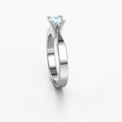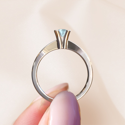In your eyes, no one else compares to her. She is one in a million, unlike anyone else and pure? These qualities are emphasized perfectly by our traditional platinum solitaire aquamarine ring. This aquamarine is carefully selected by our keen artisan goldsmiths. It equals the unique qualities of the love of your life. There is no better way to memorialize your proposal than this symbol of true love. The ring shown above is called the Ichelle 1, we call this a solitaire ring because it contains a single gemstone. The engagement ring is made in platinum and has a round aquamarine of 4.2 mm. Each piece of jewellery is made with passion and love by one of our master goldsmiths.After receiving your order, our goldsmiths will start the creative process of making your Ichelle 1 engagement ring. We don't keep stock. This is advantageous because these costs will not be passed on to you. Therefore, we can offer jewellery at exceptionally low prices.Have you found a specific engagement ring somewhere which you would like to give to your loved one? Please feel free to express your wishes to our jewel designers because we would be honoured to turn your design into a traditional engagement ring. You can follow the development of your ring design because we use 3D drawings. This gives you a realistic preview of how your design will look. You can also preorder a dummy. A dummy is a plastic ring, which can be shaped according your ring design. You can try it on and check if its width and size are suitable for you. We will gladly send you a non-binding offer, based on a fair price/ quality ratio. It will amaze you, considering the quality of the ring and gemstones.To make it easier for you, we offer a 30 day return policy. Check our terms and conditions.