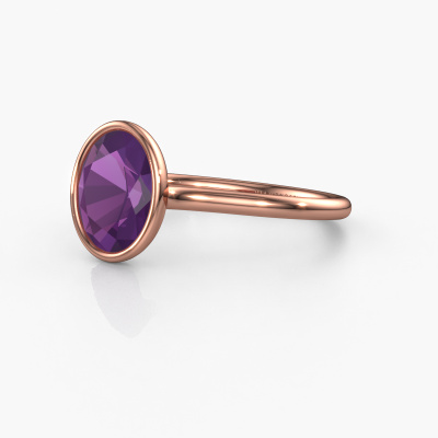 This 14 Carat rose gold ring is called Lavon OVL and is set with 9x7 mm amethyst. This exclusive rose gold bezel set engagement ring is a true work of art! The ornaments are crafted with a lot of patience and great passion. In order to create this ring with great precision, this craft requires a keen eye and skilful hand. A challenge which ignites a fire in our expert goldsmith. The exquisite amethysten are set in a special way so they stand out even more. This gives the ring an even more glamorous appearance. The edgy engagement ring is actually unique on its own because of the gemstones which we carefully select especially for this ring. On top of that you select the precious metals which will be used to create a unique ring for the most extraordinary woman in your life! This jewel is created to add sparkle to your finger, each jewel is lovingly made by hand by our goldsmiths.By using our modern techniques, we can design and customize the finest quality jewels with the utmost care for you. Our engagement rings are always priced 30 percent lower than other jewellers. We make engagement rings to order so we don't have to maintain a large stock. If you have a certain budget, we are more than happy to advice you accordingly.Our team adds new designs to our online collection daily. Our designers and goldsmiths work together in creating the best design. We strive to offer a diverse collection of jewels. Perhaps you have a specific jewel design in mind. One you came across somewhere. Please contact us for a free consultation. We will make you an offer, based on a fair price/ quality ratio, that will baffle you.To make it easier for you, we offer a 30 day return policy. Check our terms and conditions.