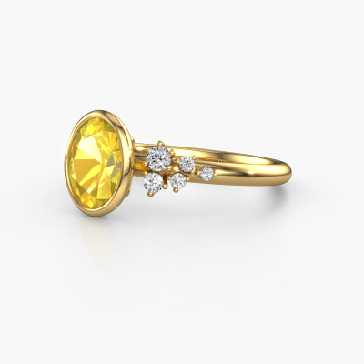 This 14 Carat gold ring is called Aliyah OVL and is set with yellow sapphire. Do you keep up with the latest fashion trends? Do you want a unique engagement ring that matches your lifestyle? This special engagement ring is an extraordinary ring which can be custom-made to fit your or her personal style. This modern gold engagement ring is set with yellow sapphire. Our yellow sapphire are carefully selected for this specific ring in order to create the best effect. Our expert goldsmith will create your ring in our own artisan studio where the yellow sapphire will be set with great care. The ring will then be polished to perfection. Nothing but the best for the love of your life! This jewel is made by a team of passionate goldsmiths and jewel designers. This will make your crown jewel truly eye-catching.By using a combination of the latest modern techniques, combined with ancient crafting, we can make all our engagement rings in our own studio. Each jewel is made to order. This is advantageous because we can offer you a price you won't find anywhere else.Different styles of new rings are made daily by our team. Perhaps you have found a bezel set engagement ring somewhere. One you would like to give to your loved one. Please feel free to share your thoughts and design with our jewel designers. We would love to turn your design into a modern engagement ring. You can follow the development of your ring design because we use very detailed 3D drawings. On top of that, you can order a dummy of the design. A dummy is a plastic ring, which can be shaped according your ring design. You can try it on and check if the engagement ring is up to standard. We will gladly send you a non-binding offer, based on a fair price/ quality ratio. The offer will baffle you, considering the quality of the ring and gemstones.To make it easier for you, we offer a 30 day return policy. Check our terms and conditions.