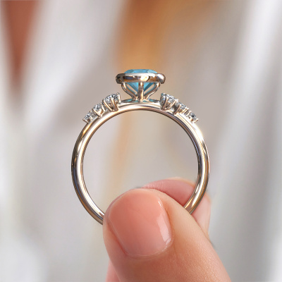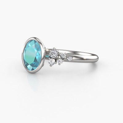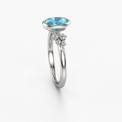 This platinum ring is called Aliyah OVL and is set with blue topaz. Do you keep up with the latest fashion trends? Do you want a unique engagement ring that matches your lifestyle? This special engagement ring is an extraordinary ring which can be custom-made to fit your or her personal style. This modern platinum engagement ring is set with blue topaz. Our blue topaz are carefully selected for this specific ring in order to create the best effect. Our expert goldsmith will create your ring in our own artisan studio where the blue topaz will be set with great care. The ring will then be polished to perfection. Nothing but the best for the love of your life! This jewel is made by a team of passionate goldsmiths and jewel designers. This will make your crown jewel truly eye-catching.By using a combination of the latest modern techniques, combined with ancient crafting, we can make all our engagement rings in our own studio. Each jewel is made to order. This is advantageous because we can offer you a price you won't find anywhere else.Different styles of new rings are made daily by our team. Perhaps you have found a bezel set engagement ring somewhere. One you would like to give to your loved one. Please feel free to share your thoughts and design with our jewel designers. We would love to turn your design into a modern engagement ring. You can follow the development of your ring design because we use very detailed 3D drawings. On top of that, you can order a dummy of the design. A dummy is a plastic ring, which can be shaped according your ring design. You can try it on and check if the engagement ring is up to standard. We will gladly send you a non-binding offer, based on a fair price/ quality ratio. The offer will baffle you, considering the quality of the ring and gemstones.To make it easier for you, we offer a 30 day return policy. Check our terms and conditions.