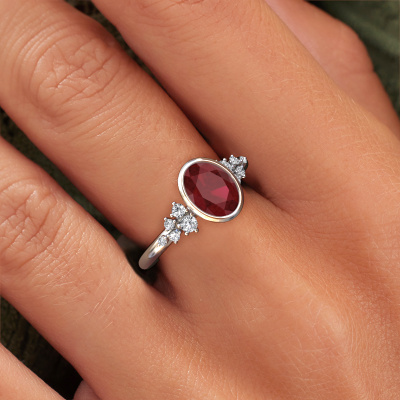 This platinum ring is called Aliyah OVL and is set with ruby. Do you keep up with the latest fashion trends? Do you want a unique engagement ring that matches your lifestyle? This special engagement ring is an extraordinary ring which can be custom-made to fit your or her personal style. This modern platinum engagement ring is set with ruby. Our ruby are carefully selected for this specific ring in order to create the best effect. Our expert goldsmith will create your ring in our own artisan studio where the ruby will be set with great care. The ring will then be polished to perfection. Nothing but the best for the love of your life! This jewel is made by a team of passionate goldsmiths and jewel designers. This will make your crown jewel truly eye-catching.By using a combination of the latest modern techniques, combined with ancient crafting, we can make all our engagement rings in our own studio. Each jewel is made to order. This is advantageous because we can offer you a price you won't find anywhere else.Different styles of new rings are made daily by our team. Perhaps you have found a bezel set engagement ring somewhere. One you would like to give to your loved one. Please feel free to share your thoughts and design with our jewel designers. We would love to turn your design into a modern engagement ring. You can follow the development of your ring design because we use very detailed 3D drawings. On top of that, you can order a dummy of the design. A dummy is a plastic ring, which can be shaped according your ring design. You can try it on and check if the engagement ring is up to standard. We will gladly send you a non-binding offer, based on a fair price/ quality ratio. The offer will baffle you, considering the quality of the ring and gemstones.To make it easier for you, we offer a 30 day return policy. Check our terms and conditions.