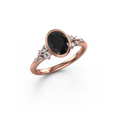 This 14 Carat rose gold ring is called Aliyah OVL and is set with black diamond. Do you keep up with the latest fashion trends? Do you want a unique engagement ring that matches your lifestyle? This special engagement ring is an extraordinary ring which can be custom-made to fit your or her personal style. This modern rose gold engagement ring is set with black diamond. Our black diamonds are carefully selected for this specific ring in order to create the best effect. Our expert goldsmith will create your ring in our own artisan studio where the black diamond will be set with great care. The ring will then be polished to perfection. Nothing but the best for the love of your life! This jewel is made by a team of passionate goldsmiths and jewel designers. This will make your crown jewel truly eye-catching.By using a combination of the latest modern techniques, combined with ancient crafting, we can make all our engagement rings in our own studio. Each jewel is made to order. This is advantageous because we can offer you a price you won't find anywhere else.Different styles of new rings are made daily by our team. Perhaps you have found a bezel set engagement ring somewhere. One you would like to give to your loved one. Please feel free to share your thoughts and design with our jewel designers. We would love to turn your design into a modern engagement ring. You can follow the development of your ring design because we use very detailed 3D drawings. On top of that, you can order a dummy of the design. A dummy is a plastic ring, which can be shaped according your ring design. You can try it on and check if the engagement ring is up to standard. We will gladly send you a non-binding offer, based on a fair price/ quality ratio. The offer will baffle you, considering the quality of the ring and gemstones.To make it easier for you, we offer a 30 day return policy. Check our terms and conditions.