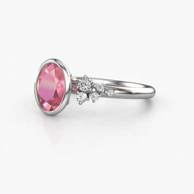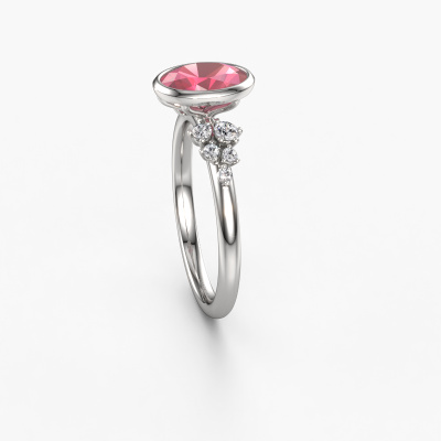 This 14 Carat white gold ring is called Aliyah OVL and is set with tourmaline pink. Do you keep up with the latest fashion trends? Do you want a unique engagement ring that matches your lifestyle? This special engagement ring is an extraordinary ring which can be custom-made to fit your or her personal style. This modern white gold engagement ring is set with tourmaline pink. Our tourmaline pink are carefully selected for this specific ring in order to create the best effect. Our expert goldsmith will create your ring in our own artisan studio where the tourmaline pink will be set with great care. The ring will then be polished to perfection. Nothing but the best for the love of your life! This jewel is made by a team of passionate goldsmiths and jewel designers. This will make your crown jewel truly eye-catching.By using a combination of the latest modern techniques, combined with ancient crafting, we can make all our engagement rings in our own studio. Each jewel is made to order. This is advantageous because we can offer you a price you won't find anywhere else.Different styles of new rings are made daily by our team. Perhaps you have found a bezel set engagement ring somewhere. One you would like to give to your loved one. Please feel free to share your thoughts and design with our jewel designers. We would love to turn your design into a modern engagement ring. You can follow the development of your ring design because we use very detailed 3D drawings. On top of that, you can order a dummy of the design. A dummy is a plastic ring, which can be shaped according your ring design. You can try it on and check if the engagement ring is up to standard. We will gladly send you a non-binding offer, based on a fair price/ quality ratio. The offer will baffle you, considering the quality of the ring and gemstones.To make it easier for you, we offer a 30 day return policy. Check our terms and conditions.