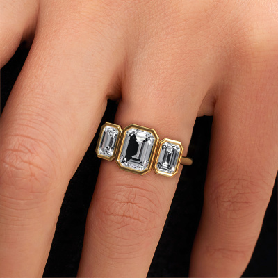 This 14 Carat gold ring is called Lavon 3 EME and is set with 3.15 crt lab grown diamond. This exclusive gold bezel set engagement ring is a true work of art! The ornaments are crafted with a lot of patience and great passion. In order to create this ring with great precision, this craft requires a keen eye and skilful hand. A challenge which ignites a fire in our expert goldsmith. The exquisite lab-grown diamonds are set in a special way so they stand out even more. This gives the ring an even more glamorous appearance. The special engagement ring is actually unique on its own because of the gemstones which we carefully select especially for this ring. On top of that you select the precious metals which will be used to create a unique ring for the most extraordinary woman in your life! This jewel [extra1_long][bestp1v_long]Do you have a specific ring in mind? One you came across somewhere. Please feel free to tell us your wishes and we will turn your design into a unique engagement ring. You can follow the development of your ring design because we use 3D drawings. This gives you a realistic preview of your design. We will gladly send you a non-binding offer, based on a fair price/ quality ratio. It will amaze you.To make it easier for you, we offer a 30 day return policy. Check our terms and conditions.