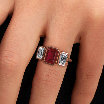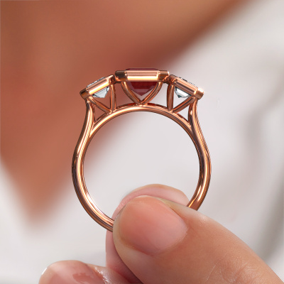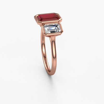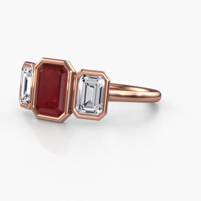 This 14 Carat rose gold ring is called Lavon 3 EME and is set with 8x6 mm ruby. This exclusive rose gold bezel set engagement ring is a true work of art! The ornaments are crafted with a lot of patience and great passion. In order to create this ring with great precision, this craft requires a keen eye and skilful hand. A challenge which ignites a fire in our expert goldsmith. The exquisite ruby are set in a special way so they stand out even more. This gives the ring an even more glamorous appearance. The special engagement ring is actually unique on its own because of the gemstones which we carefully select especially for this ring. On top of that you select the precious metals which will be used to create a unique ring for the most extraordinary woman in your life! This jewel [extra1_long][bestp1v_long]Do you have a specific ring in mind? One you came across somewhere. Please feel free to tell us your wishes and we will turn your design into a unique engagement ring. You can follow the development of your ring design because we use 3D drawings. This gives you a realistic preview of your design. We will gladly send you a non-binding offer, based on a fair price/ quality ratio. It will amaze you.To make it easier for you, we offer a 30 day return policy. Check our terms and conditions.