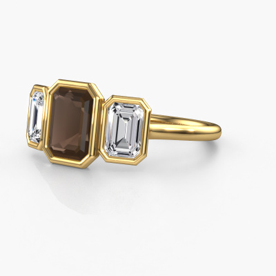 This 14 Carat gold ring is called Lavon 3 EME and is set with 8x6 mm smokey quartz. This exclusive gold bezel set engagement ring is a true work of art! The ornaments are crafted with a lot of patience and great passion. In order to create this ring with great precision, this craft requires a keen eye and skilful hand. A challenge which ignites a fire in our expert goldsmith. The exquisite smokey quartz are set in a special way so they stand out even more. This gives the ring an even more glamorous appearance. The special engagement ring is actually unique on its own because of the gemstones which we carefully select especially for this ring. On top of that you select the precious metals which will be used to create a unique ring for the most extraordinary woman in your life! This jewel [extra1_long][bestp1v_long]Do you have a specific ring in mind? One you came across somewhere. Please feel free to tell us your wishes and we will turn your design into a unique engagement ring. You can follow the development of your ring design because we use 3D drawings. This gives you a realistic preview of your design. We will gladly send you a non-binding offer, based on a fair price/ quality ratio. It will amaze you.To make it easier for you, we offer a 30 day return policy. Check our terms and conditions.