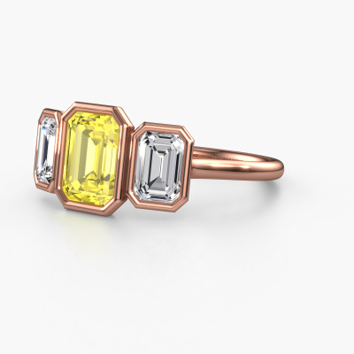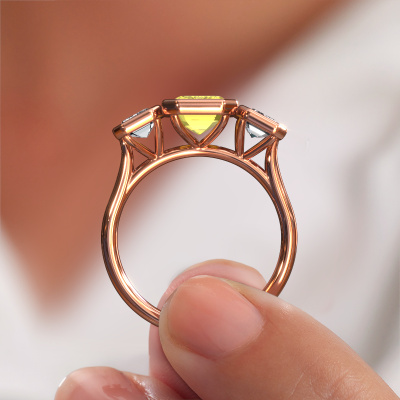 This 14 Carat rose gold ring is called Lavon 3 EME and is set with 8x6 mm yellow lab grown diamond. This exclusive rose gold bezel set engagement ring is a true work of art! The ornaments are crafted with a lot of patience and great passion. In order to create this ring with great precision, this craft requires a keen eye and skilful hand. A challenge which ignites a fire in our expert goldsmith. The exquisite yellow lab grown diamonds are set in a special way so they stand out even more. This gives the ring an even more glamorous appearance. The special engagement ring is actually unique on its own because of the gemstones which we carefully select especially for this ring. On top of that you select the precious metals which will be used to create a unique ring for the most extraordinary woman in your life! This jewel [extra1_long][bestp1v_long]Do you have a specific ring in mind? One you came across somewhere. Please feel free to tell us your wishes and we will turn your design into a unique engagement ring. You can follow the development of your ring design because we use 3D drawings. This gives you a realistic preview of your design. We will gladly send you a non-binding offer, based on a fair price/ quality ratio. It will amaze you.To make it easier for you, we offer a 30 day return policy. Check our terms and conditions.