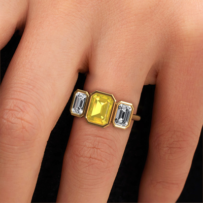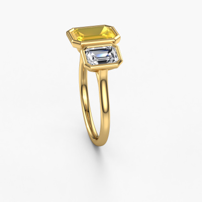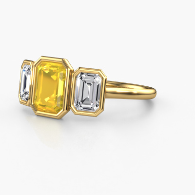 This 14 Carat gold ring is called Lavon 3 EME and is set with 8x6 mm yellow sapphire. This exclusive gold bezel set engagement ring is a true work of art! The ornaments are crafted with a lot of patience and great passion. In order to create this ring with great precision, this craft requires a keen eye and skilful hand. A challenge which ignites a fire in our expert goldsmith. The exquisite yellow sapphire are set in a special way so they stand out even more. This gives the ring an even more glamorous appearance. The special engagement ring is actually unique on its own because of the gemstones which we carefully select especially for this ring. On top of that you select the precious metals which will be used to create a unique ring for the most extraordinary woman in your life! This jewel [extra1_long][bestp1v_long]Do you have a specific ring in mind? One you came across somewhere. Please feel free to tell us your wishes and we will turn your design into a unique engagement ring. You can follow the development of your ring design because we use 3D drawings. This gives you a realistic preview of your design. We will gladly send you a non-binding offer, based on a fair price/ quality ratio. It will amaze you.To make it easier for you, we offer a 30 day return policy. Check our terms and conditions.