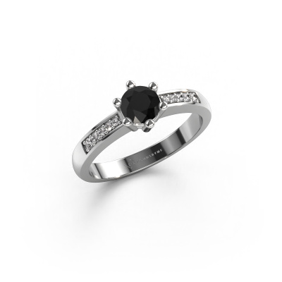 The ring shown above is called the Luna 2. We call this type of ring a pavé solitaire ring because it has one centre gemstone and a band that is also pave set with gemstones. This engagement ring is made in platinum set with a 0.60 crt round black diamond, and pave set diamonds at the sides. Each piece of jewellery is unique in every way! Simply customize to your liking,This classic platinum pavé solitaire engagement ring has an exquisite round black diamond centre stone. To further accentuate the centre stone, the band is set full with more diamonds. Its open prong setting allows light to strike the black diamond from various angles and this adds sparkle to your black diamond ring. The photo shown above depicts the goldsmith's carefully handcrafted details of the ring. The high positioning of the centre stone is truly eye-catching. The perfect engagement ring for the crown jewel of your life!Because we design and deliver our own rings, we can offer you a engagement ring at a price you won't find anywhere else. A ring is made to order, which helps prevent excess supplies, so we can make you a great price offer. We understand it feels risky, buying your engagement ring online, but we will gladly assist in the designing process, taking your budget into consideration.Our team adds new designs to our online collection daily. Our designers and goldsmiths work together in creating the best design. We strive to offer a diverse collection of jewels. Perhaps you have a specific jewel design in mind. One you came across somewhere. Please contact us for a free consultation. We will make you an offer, based on a fair price/ quality ratio, that will baffle you.To make it easier for you, we offer a 30 day return policy. Check our terms and conditions.