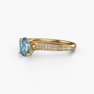The ring shown above is called the Elenore ovl. We call this type of ring a pavé solitaire ring because it has one centre gemstone and a band that is also pave set with gemstones. This engagement ring is made in 14 Carat gold set with a 6.5x4.5 mm oval blue lab grown diamond, and pave set diamonds at the sides. Each piece of jewellery is made by a team of passionate goldsmiths and jewel designers. This will make your crown jewel truly eye-catching.This exclusive gold pavé solitaire engagement ring has an exquisite oval blue lab grown diamond centre stone. To further accentuate the centre stone, the band is set full with more diamonds. Its open prong setting allows light to strike the blue lab grown diamond from various angles and this adds sparkle to your blue lab grown diamond ring. The photo shown above depicts the goldsmith's carefully handcrafted details of the ring. The high positioning of the centre stone is truly eye-catching. The perfect engagement ring for the crown jewel of your life!After receiving your order, our goldsmiths will start the creative process of making your Elenore ovl engagement ring. We don't keep stock. This is advantageous because these costs will not be passed on to you. Therefore, we can offer jewellery at exceptionally low prices.Have you found a specific engagement ring somewhere which you would like to give to your loved one? Please feel free to express your wishes to our jewel designers because we would be honoured to turn your design into a exclusive engagement ring. You can follow the development of your ring design because we use 3D drawings. This gives you a realistic preview of how your design will look. You can also preorder a dummy. A dummy is a plastic ring, which can be shaped according your ring design. You can try it on and check if its width and size are suitable for you. We will gladly send you a non-binding offer, based on a fair price/ quality ratio. It will amaze you, considering the quality of the ring and gemstones.To make it easier for you, we offer a 30 day return policy. Check our terms and conditions.