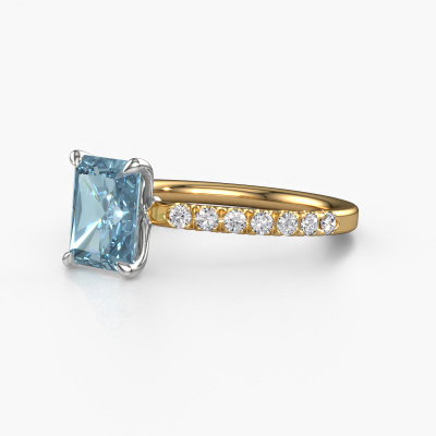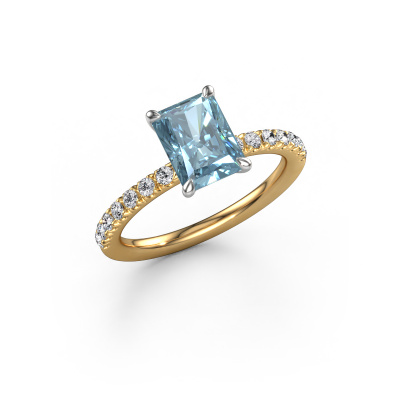 The ring shown above is called the Crystal RAD 2. We call this type of ring a pavé solitaire ring because it has one centre gemstone and a band that is also pave set with gemstones. The 14 Carat gold engagement ring is set with a radiant 8x6 mm blue lab grown diamond centre stone and the band is pave set with lab grown diamond gemstones. Each jewel is made to shine bright around your finger. Each jewel is hand made with love by our goldsmiths.This luxury gold pavé solitaire engagement ring has an exquisite radiant blue lab grown diamond centre stone. To further accentuate the centre stone, the band is fully set with more lab-grown diamonds. Its open prong setting allows light to strike the blue lab grown diamond from various angles and this adds sparkle to your blue lab grown diamond ring. The photo shown above depicts the goldsmith's carefully handcrafted details of the ring. The high positioning of the centre stone is truly eye-catching. The perfect engagement ring for the crown jewel of your life! By using a combination of the latest modern techniques, combined with ancient crafting, we can make all our engagement rings in our own studio. Each jewel is made to order. This is advantageous because we can offer you a price you won't find anywhere else.Our designers and goldsmiths work together each day, creating new jewels. Perhaps you have found a nice luxury engagement ring somewhere, which can be used to customize your unique ring. Please feel free to contact us. We will make you an offer, based on a fair price/ quality ratio, which will amaze you.To make it easier for you, we offer a 30 day return policy. Check our terms and conditions.