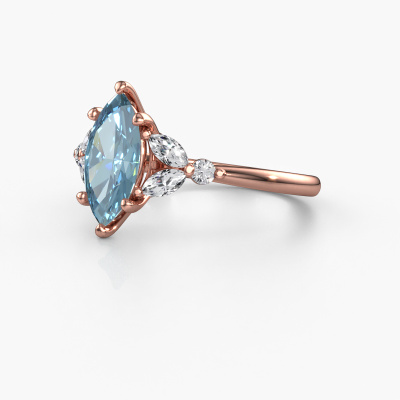 The ring shown above is called the Megan MRQ. We call this type of ring a pavé solitaire ring because it has one centre gemstone and a band that is also pave set with gemstones. This engagement ring is made in 14 Carat rose gold set with a 11x5.5 mm marquise blue lab grown diamond, and pave set lab-grown diamonds at the sides. Each piece of jewellery is made with passion and love by one of our master goldsmiths.This fantasy rose gold pavé solitaire engagement ring has an exquisite marquise blue lab grown diamond centre stone. To further accentuate the centre stone, the band is set full with more lab-grown diamonds. Its open prong setting allows light to strike the blue lab grown diamond from various angles and this adds sparkle to your blue lab grown diamond ring. The photo shown above depicts the goldsmith's carefully handcrafted details of the ring. The high positioning of the centre stone is truly eye-catching. The perfect engagement ring for the crown jewel of your life![bestp1v_long]Have you found a specific engagement ring somewhere which you would like to give to your loved one? Please feel free to express your wishes to our jewel designers because we would be honoured to turn your design into a fantasy engagement ring. You can follow the development of your ring design because we use 3D drawings. This gives you a realistic preview of how your design will look. You can also preorder a dummy. A dummy is a plastic ring, which can be shaped according your ring design. You can try it on and check if its width and size are suitable for you. We will gladly send you a non-binding offer, based on a fair price/ quality ratio. It will amaze you, considering the quality of the ring and gemstones.To make it easier for you, we offer a 30 day return policy. Check our terms and conditions.