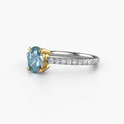 The ring shown above is called the Lynelle 2. We call this type of ring a pavé solitaire ring because it has one centre gemstone and a band that is also pave set with gemstones. This engagement ring is made in 14 Carat white gold set with a 7x5 mm oval blue lab grown diamond, and pave set diamonds at the sides. Each piece of jewellery is created to add sparkle to your finger, each jewel is lovingly made by hand by our goldsmiths.This classic white gold pavé solitaire engagement ring has an exquisite oval blue lab grown diamond centre stone. To further accentuate the centre stone, the band is set full with more diamonds. Its open prong setting allows light to strike the blue lab grown diamond from various angles and this adds sparkle to your blue lab grown diamond ring. The photo shown above depicts the goldsmith's carefully handcrafted details of the ring. The high positioning of the centre stone is truly eye-catching. The perfect engagement ring for the crown jewel of your life!After receiving your order, our goldsmiths will start the creative process of making your Lynelle 2 engagement ring. We don't keep stock. This is advantageous because these costs will not be passed on to you. Therefore, we can offer jewellery at exceptionally low prices.Do you have a specific ring in mind? One you came across somewhere. Please feel free to tell us your wishes and we will turn your design into a unique engagement ring. You can follow the development of your ring design because we use 3D drawings. This gives you a realistic preview of your design. We will gladly send you a non-binding offer, based on a fair price/ quality ratio. It will amaze you.To make it easier for you, we offer a 30 day return policy. Check our terms and conditions.