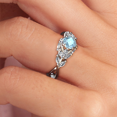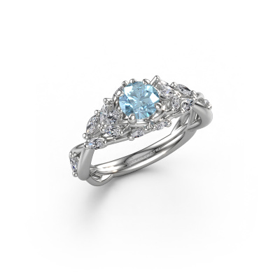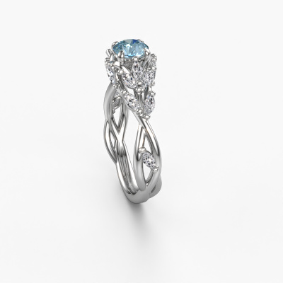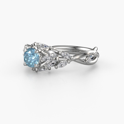 The ring shown above is called the Samantha RND. We call this type of ring a pavé solitaire ring because it has one centre gemstone and a band that is also pave set with gemstones. This engagement ring is made in 14 Carat white gold set with a 5 mm round blue lab grown diamond, and pave set diamonds at the sides. Each piece of jewellery is made with passion and love by one of our master goldsmiths.This contemporary white gold pavé solitaire engagement ring has an exquisite round blue lab grown diamond centre stone. To further accentuate the centre stone, the band is set full with more diamonds. Its open prong setting allows light to strike the blue lab grown diamond from various angles and this adds sparkle to your blue lab grown diamond ring. The photo shown above depicts the goldsmith's carefully handcrafted details of the ring. The high positioning of the centre stone is truly eye-catching. The perfect engagement ring for the crown jewel of your life!By using a combination of the latest modern techniques, combined with ancient crafting, we can make all our engagement rings in our own studio. Each jewel is made to order. This is advantageous because we can offer you a price you won't find anywhere else.Our designers and goldsmiths work together each day, creating new jewels. Perhaps you have found a nice contemporary engagement ring somewhere, which can be used to customize your unique ring. Please feel free to contact us. We will make you an offer, based on a fair price/ quality ratio, which will amaze you.To make it easier for you, we offer a 30 day return policy. Check our terms and conditions.
